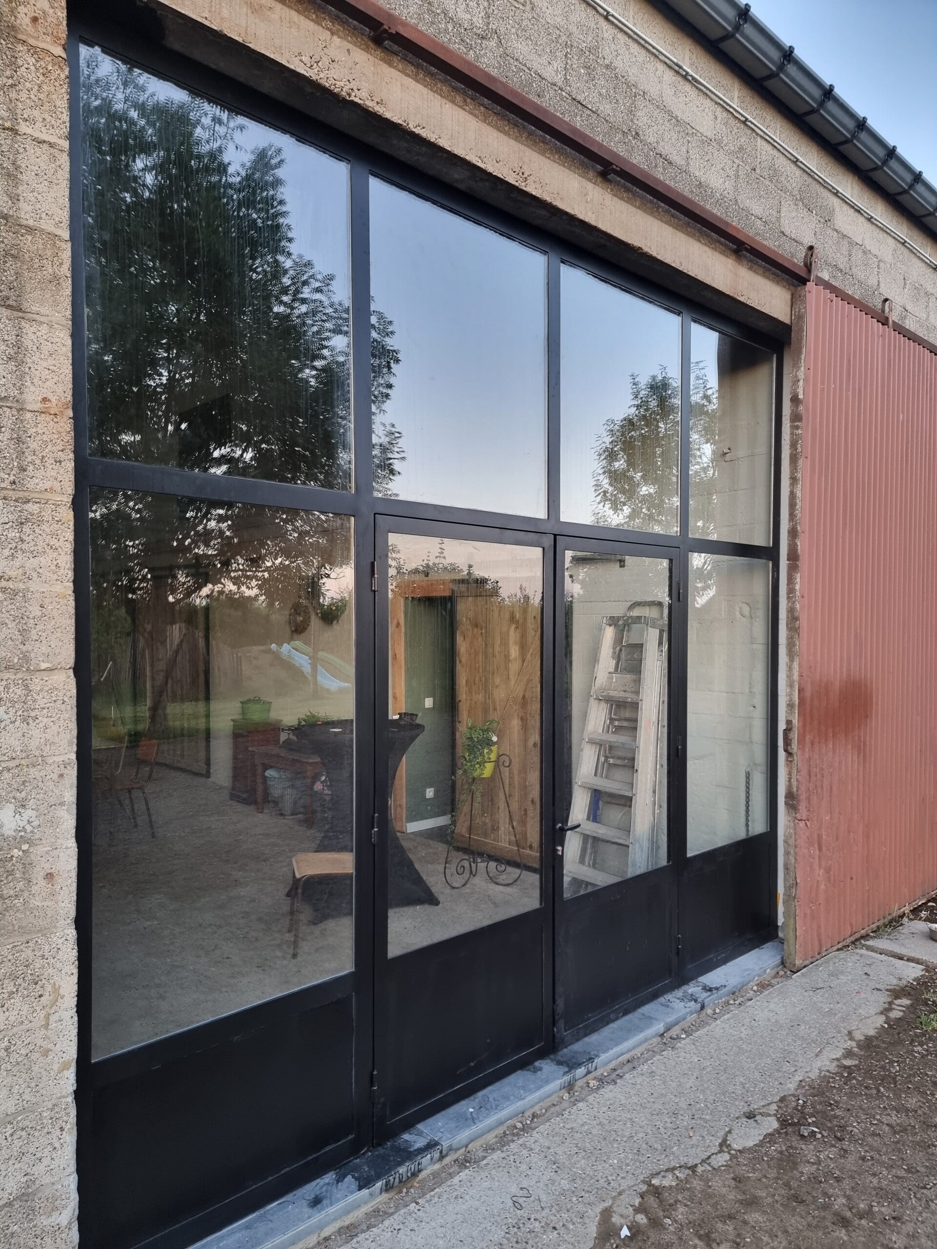 Deze deur met stalen raamwerk op maat zorgt voor een rustieke look .
